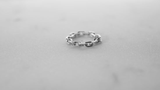 Sterling silver chain ring - diamond cut curb chain. Available in two chain diameters, 5mm (medium) or 6mm (large). You can also select between silver or oxidized silver (black).